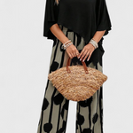 Frescura elegante para el día a día. El conjunto Aleida combina un top asimétrico moderno con pantalones estampados de corte relajado, ofreciendo una silueta contemporánea con máxima comodidad. Diseñado con tejidos premium que resisten la decoloración y mantienen su forma, es ideal para looks pulidos sin esfuerzo.